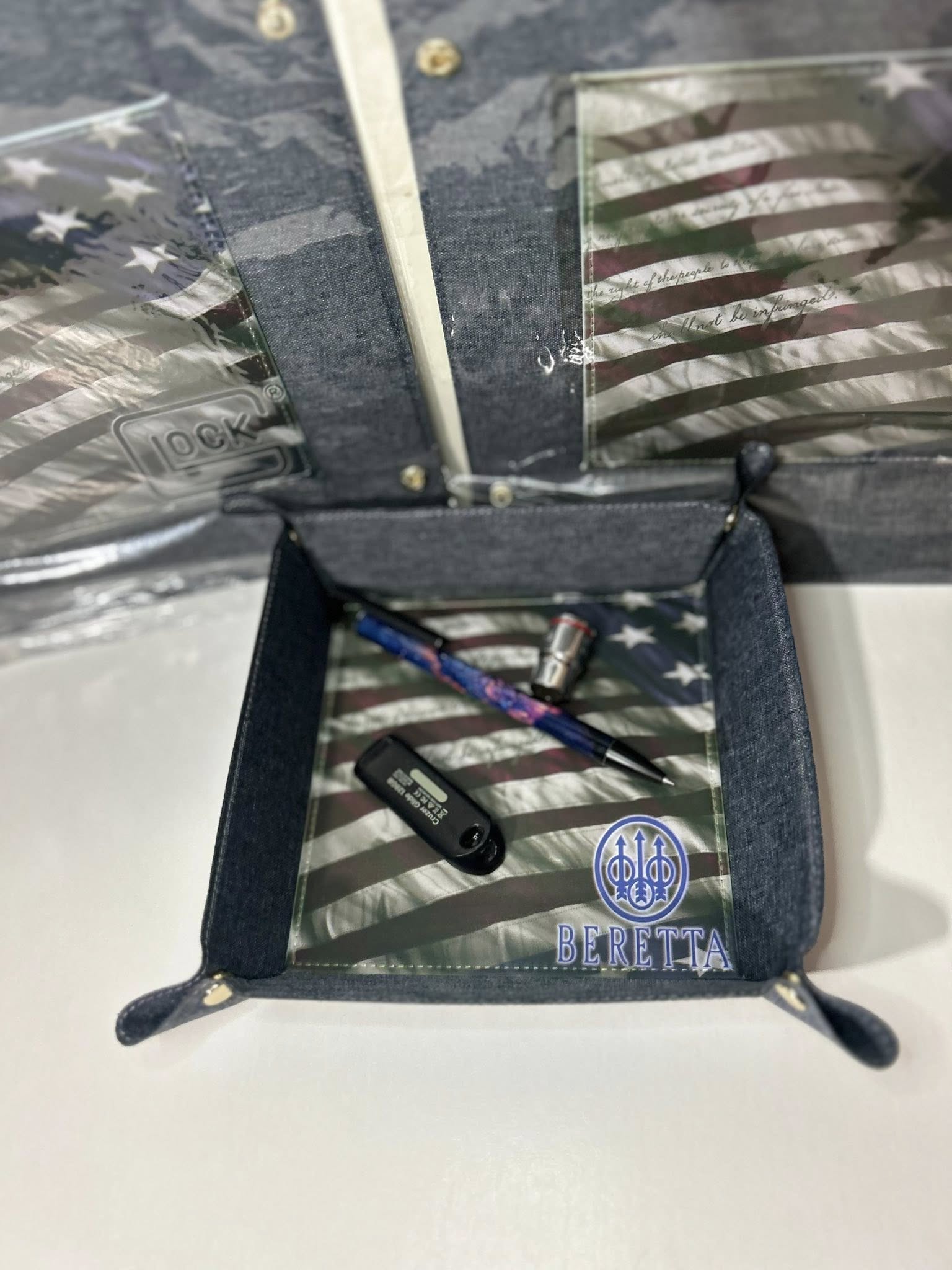 Also known as a drop tray, pew pew mat, pew pew tray. this compact organizer is perfect for corralling your everyday carry items - keys, wallet, phone, coins, jewelry, and more. The snap-together design makes it easy to fold flat for storage or travel, then pop open when you need it. It even works great at the range!
