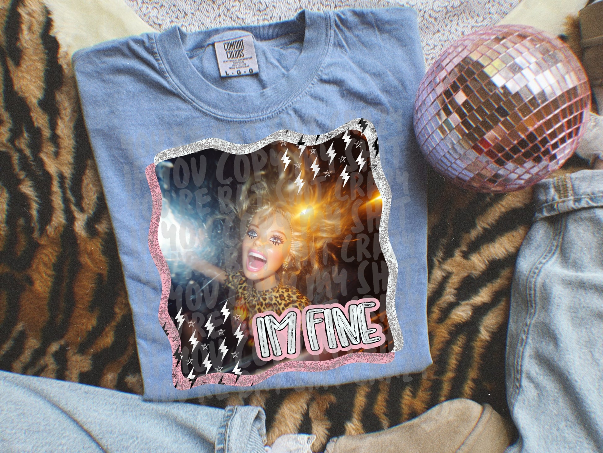 Channel your inner Barbie with this playful "I'm FINE" graphic tee that perfectly captures those moments when you're totally fine... really! This statement shirt features bold, eye-catching graphics that blend humor with style.